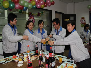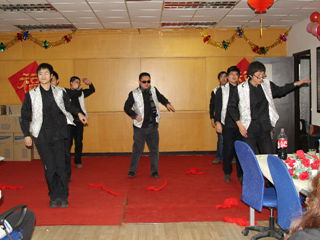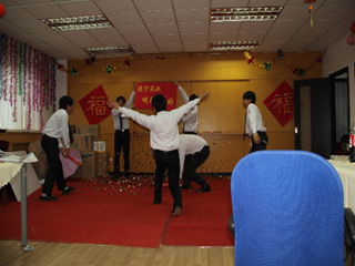 中午酒会开始,员工们表演了自编节目,节目丰富精彩。