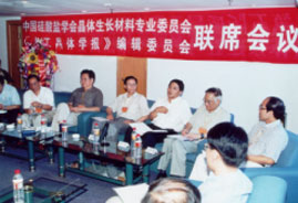 2001年7月大连淡宁在大连承办中国硅酸盐学会晶体生长材料专业委员会会议,有两位院士及来自全国的30多位人工晶体领域的专家出席。郑琛董事长(左五)在会上介绍大连淡宁的产业化发展思路。