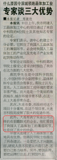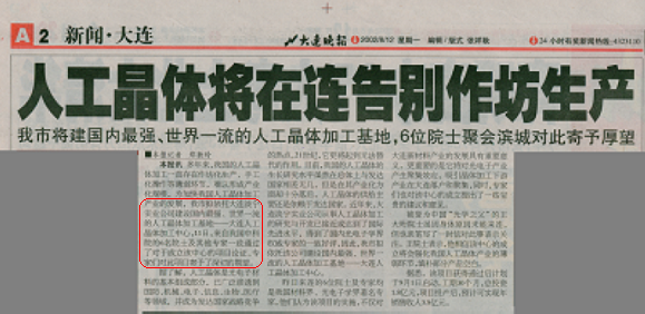 大连淡宁实业有限公司将建国内最强、世界一流的人工晶体加工基地