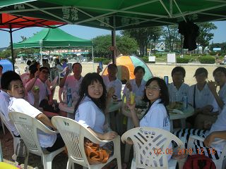图1.海滩合影      图2.举杯畅饮